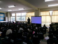 本日の3時限目に2年生を対象とした選挙出前授業を体育館で実施しました。スライドでの説明や、実際に選挙で使用している記載台、投票箱や投票用紙などを使い、模擬投票も体験することができました。選挙というものをより身近に感じることのできる、良い学びの機会となりました。