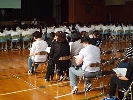 本日、5・6時間目に高校説明会が開催されました。12校の高校の先生方が来校され各学校の特色や学習のこと部活動のこと進路のことなど丁寧に説明していただきました。3年生が中心でしたが、85人の保護者の方も参加され、真剣なまなざしで、食い入るように話を聞く生徒の姿が印象的でした。これから、説明会や体験入学がめじろおしとなります。自分のめざす進路に合った学校を選び参加してみてください。