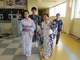 6月17日(月)家庭科の授業の一環として、講師に生井里美先生(他6名)を招いて、2年生を対象に浴衣の着付け教室が行われました。家庭科分野の衣食住の生活で「衣服の構成」があり、和服の着方を知るということで、実際に浴衣に袖を通し、正しい着方を教わり、日本の伝統文化に触れることができました。また、浴衣の着付けだけではなく立礼や座礼、立居振舞も教わることができました。男子も女子も浴衣がよく似合い、楽しみながら学習することができました。