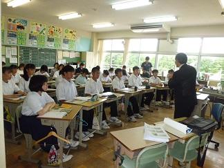 3年生が修学旅行を終え、2年生の林間学校も明日に迫りました。昨日、全校集会が行われました。市内大会の表彰では多くの部で入賞し、多くの生徒が表彰されました。今月の歌声は「翼をください」を全校合唱しました。委員会からの発表では生活委員会が衣替えに合わせて身だしなみについて発表しました。