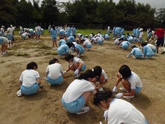 本日、除草作業がありました。岩名中学校は水に恵まれた土壌で、草木がよく育っています。運動会を前にグランド整備もかねて除草を行い少しでもグラウンドの良い状態で当日を迎えたいと思います。今回は保護者の方も約30名の方に参加いただき、子供たちとともに作業をしていただきました。