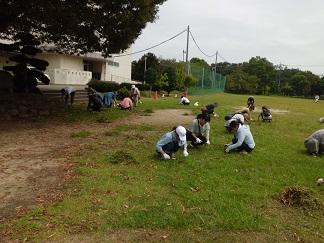 暑かったり、涼しくなったりでなかなか安定しない天候が続きますが、そんな中、10/6(日)に岩名一丁目公園の除草作業が行われました。岩名中からも中学生ボランティアが20名ほど参加して、除草、清掃活動を行いました。今回は1・2年生が新人戦のため3年生の参加が多かったようです。参加されたみなさんお疲れ様でした。
