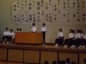 さて、終業式ですが11日(金)に行われ、代表生徒の話、校長先生の話がありました。1年生渡邊千代さんからは時間に関する課題が語られました。2年生倉部陽輝くんからはメリハリの付け方を話しました。3年生小林大輝くんからは後期の抱負について話がありました。校長先生からは、学校のめざす姿、通知票の見方・観点について話しがありました。