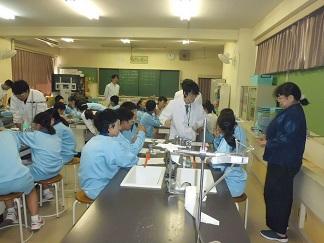 10/10(木)2年生を対象に「わくわく理科授業」が行われました。今年度も東京理科大学の先生と学生さんにお越しいただき、化学変化についての実験を行いました。吸熱反応、炎熱反応、有機溶媒の溶解性、高分子の合成、ルミノールの化学発光について実験しました。理科の堀切先生は「子どもたちの食いつきも良く、とても面白い授業だった」と言っていました。東京理科大学のみなさんありがとうございました。