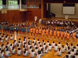 7月6日(金)葛北・県吹奏楽コンクール・ロボコン・美術の壮行会が行われました。今週末から行われる、運動部の葛北大会、26日に行われる県吹奏楽コンクール、美術部が出展する各種コンクール・情報技術部が出場するロボットコンテストの壮行会です。今回は保護者会ということもあり、雨の降る足下の悪い中でしたが多くの保護者の方に参観をいただき、選手達の思いと熱のこもった応援で盛り上がる会となりました。会の最後に野球部部長の内田君が「たくさんの方に応援をいただいたことに感謝し頑張る!」とういう決意を述べました。