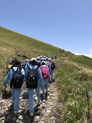 山頂目指して始まった登山、天候にも恵まれ無事登頂することができました。