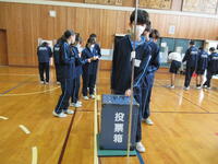 本日の3時限目に2年生を対象とした選挙出前授業を体育館で実施しました。スライドでの説明や、実際に選挙で使用している記載台、投票箱や投票用紙などを使い、模擬投票も体験することができました。選挙というものをより身近に感じることのできる、良い学びの機会となりました。