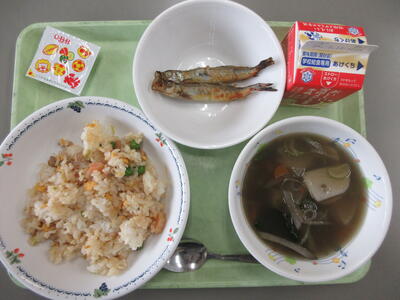 ・焼豚チャーハン ・牛乳 ・ししゃものガーリック焼き