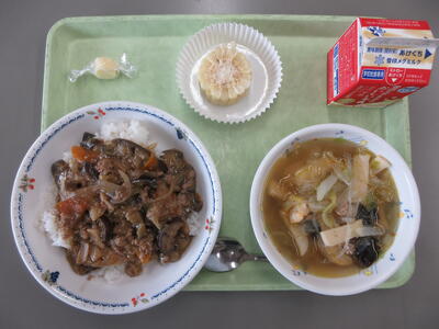 ・ご飯・牛乳・マーボー茄子・タイピーエン・野田市のとうもろこし・チーズ