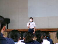 本日、1学年は学年集会を開きました。学級委員や各委員より、1学年として日々の生活の中で心掛けることについて話をしました。今回のテーマは「時間意識」です。朝読書や3分前着席、掃除の時間や帰りの会の時間の呼びかけなどを守っていくことを話しました。この学年集会のいいところは、各委員が自発的に行ったということです。自分たちで決め、自分たちで実行する、自立の第一歩です。頑張ってください!