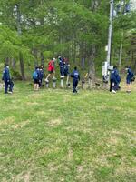 オリエンテーリング開始です。配付された地図から、いくつかあるチェックポイントを巡り、ポイントにある点数と、移動距離や起伏などを考え、各班ごとに作戦を立て、点数を競い合います。みんな真剣です。