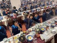いよいよお待ちかねの夕食タイムです。一人ひとりがアクリルで仕切られてますが、楽しそうに食事しております。