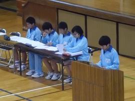 5月21日(火)雨が音をたてて降りしきる中、生徒総会が開催されました。はじめに生徒会長より今年度の学校スローガンが提言され可決されました。今年度の学校スローガンは「和~今共に岩名で上進~」に決定しました。強調性のある学校、さらに上をめざすという意味があり、そのために、「あいさつ」と「生徒会新聞の発行、放送活動」を柱に取り組むことが提案されました。その後、様々な議題が話し合われ、活発に意見も交わされ、最後は校長先生のお話で2時間におよぶ白熱した会も幕を閉じました。