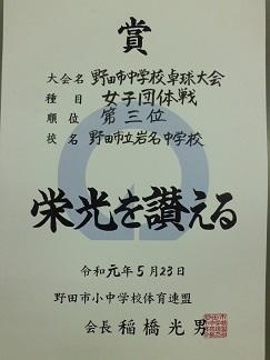 テニス女子 準決勝 東部中に勝ち 決勝 二中に敗退 準優勝