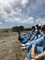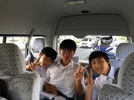 牧場での体験学習を終え、昼食にバーベキューを食べ、帰りのバスに乗りました。予定では17:00学校到着です。