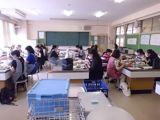 2年生が林間学校に出発し、女神湖で美味しい昼食を食べている頃、学校では給食試食会が行われました。今年は、なんと23名もの申し込みがあり大盛況でした。お父さん、お母さん方にも美味しい給食を味わってもらい、クイズで黒酢米をゲットし満足されて帰られる方やレシピを聞いて帰られる方もいらっしゃいました。