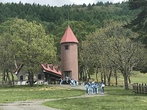 岩名中2年生の林間学校も最終日となりました。天候はあいにくの雨で、気温13℃と少し寒いかもしれません。しかし、子どもたちは疲れを見せること無く、元気に鷹山ファミリー牧場へ出発しました。今日は体験学習ということで、トラクターの操作や乳搾り、ブラッシングなどを体験します。