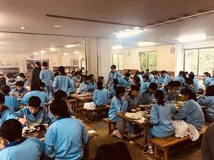 5月10日(土)土曜授業です。今日から検定試験の学習とNIE学習が始まりました。また、午後は部活動の結団式がおこなわれました。そんな盛りだくさんの中、2年生は来月の林間学校に向けて、飯盒炊飯の実習を行いました。薪を準備し、飯盒でごはんを炊いて、カレーを食べました。初めての人もいたようでしたが、協力しておいしいカレーができたようです。後片付けも含めて、林間学校での予習ができました。