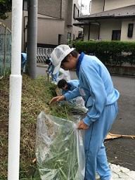 6月9日(日) 岩名一丁目公園除草ボランティアが行われました。21名がボランティアとして参加をし、一丁目の方が除草作業をした草を集める作業を中心にお手伝いをしました。とくに1年生にとっては初めてのことでしたが9名もの参加があり嬉しいかぎりです。一つの活動を通じて地域の方々との交流を深めることができました。