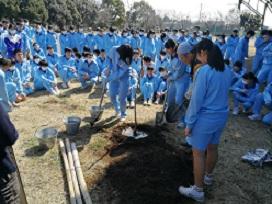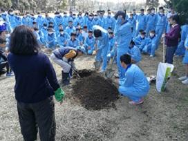 昨日までの雨とは打って変わって晴天の中、午前中に卒業記念樹の植樹が行われました。地域ボランティアの方とともに「山高神代桜」を植樹しました。