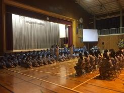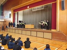 午後は「3年生を送る会」です。今年のスローガンは「報恩謝徳」!恩にたいして報いよう、感謝の気持ちをもつことという意味です。1・2年生は3年生に、3年生は1・2年生に心のこもった発表で感謝の気持ちを表しました。