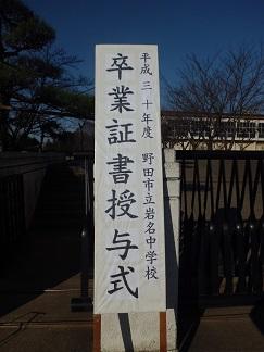 天気にも恵まれ、暖かな春の陽射しの中、第32回卒業証書授与式が行われました。115名の生徒が岩名中学校を巣立っていきました。今年の式は答辞での涙、群青での涙、卒業生も在校生も先生方も来賓も涙、涙の卒業式でした。最後は卒業生が胸を張り、たくましく成長した姿で退場していきました。卒業生のみなさん、保護者の方々、本日はおめでとうございます。今後の活躍を期待しています。
