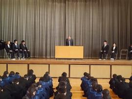 辞校式では、今年度12名の職員が転退職され、7名の先生方からご挨拶をいただきました。生徒会長の富澤さんからはからは感謝の言葉が述べられました。