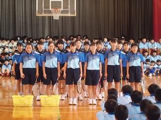 テニス部男子が本日、県大会に出場しベスト8に入ったという速報が今入りました。テニス部頑張りました。
