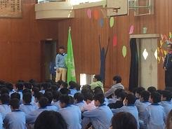 先週、土曜日に新入生歓迎会が行われました。保護者の方も70名ほど参観され、盛大に会が開かれ、恒例の部活動紹介や親睦を深めるレク、2年・3年の発表、最後に1年生より感謝の意を込めた発表が行われました。すっかり岩名中の一員になったようです。