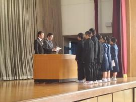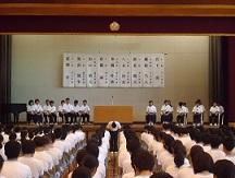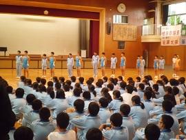 6時間目には全校集会がおこなわれました。各部活動からは2年生(吹奏楽部は3年生)の新