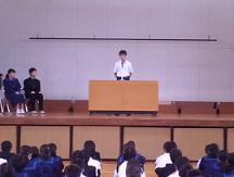 8:40 英語スピーチ 1年生 鈴木彩央里 2年 富澤幸 3年 中村幸平 暗唱 栁太梧