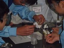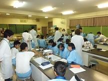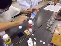 1.吸気反応 2.炎色反応 3.有機溶媒の溶解性 4.高分子合成 5.化学反応などの実験を行いました。