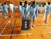 立ち会い演説後、すぐに投票が行われました。帰りの会後、選挙管理委員長の倉田さんから開票結果が放送で発表されると、各教室から歓声と拍手がわき起こりました。