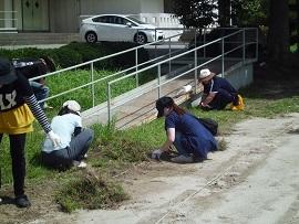 9月8日(土)夏休み明け、1回目の土曜授業が行われました。そして、土曜授業終了後、保護者の方も参加して除草作業が行われました。今年の酷暑のせいか草の伸び方が例年より激しい気がします。その分やりがいはあるかも???また、岩名は水気たっぷりのグラウンド。芝生のように草が生えています。