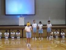2年生はキャンプファイヤーと「青葉の歌」の発表があり、林間学校での様子が伝わってきました。給食委員会からは、白衣の着こなし、はしの事、強調習慣についての発表がありました。