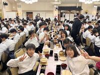 本日、保護者の方を対象とした給食試食会がありました。給食の作り方のビデオを鑑賞し、献立や給食室での工夫の説明がありました。配膳も体験しつつ、楽しく試食が行われました。
