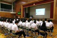 各高等学校の担当者様から高等学校はどのようなところか、またどのような生徒を求めているのかの話がありました。本校の進路指導主任からは、年間の進路計画や上級学校・受験に関する説明が行われ、生徒たちは真剣な面持ちで話に耳を傾けていました。その姿からは、それぞれが自分の将来に真摯に向き合い、進路について深く考える大切な時間となっていることが伝わってきました。