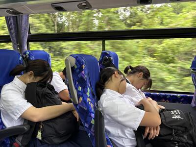 本日の岩名中学校1年生の校外学習は先ほど無事に終了しました。一年生はケガもなく、全員帰路につきました。