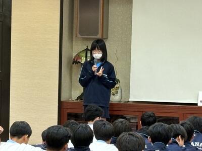 全校集会のみならず、3学年は行事が盛りだくさんです。修学旅行のSDGs学習スライドは仕上げに入り、校長面接の練習にも熱が入るだけでなく、実力テストに向けて普段の授業に前のめりに臨んでいます。すべての行事に「中学校最後」の枕詞がつく緊張感を学年全体で乗り越えようとする一生懸命な様子に、教職員も心打たれる日々です。
