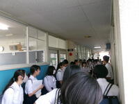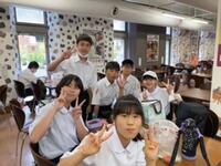 校舎見学では、体育館や各教室、食堂を見学しました。希望者は英語の先生によって英語で施設を案内してもらいました。中学校にはない食堂や自動販売機に興味津々の様子でした。