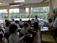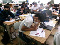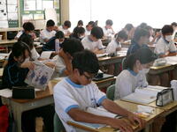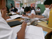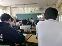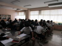 7/3(水)は高等学校の先生方をお招きして進路座談会を行いました。自分が関心のある高校を選択して説明を聞き、進路決定の参考となる情報を熱心に集めていました。前のめりに資料を読みメモする姿や、3年生らしい実りある質疑応答を行う姿は、生徒たちに受験生としての自覚が芽生えていることを物語っていました。