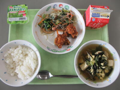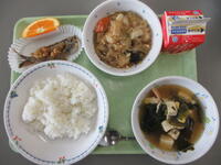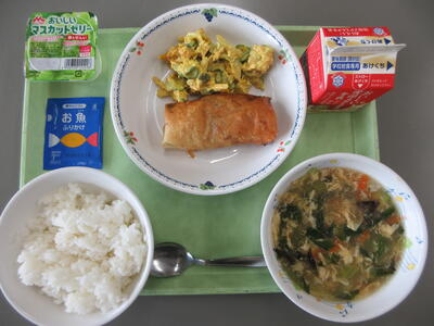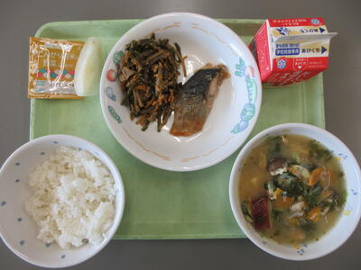 ・ごはん ・牛乳 ・鰺のピリ辛焼き ・茎わかめのきんぴら