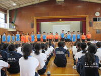 結団式が終わると、グラウンドで開閉会式の練習を行いました。応援団長の号令で一斉に入退場をして、並び順や移動後の自分の位置をしっかりと確認できました。