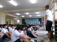 7/12(金)に葛北壮行会を実施しました。各部活動の意気込みを発表し、全校応援が響きました。選手代表の話では「自分を信じて、仲間を信じて戦おう」という岩中魂のこもった言葉がありました。また、生徒会長から「いままで学んできたことを出し切って、本気の試合ができるように頑張りましょう」という力強い言葉がありました。3年間の活動を振り返り、仲間と乗り越えてきた苦労や思い出をすべて力にして、悔いなく戦ってきてください。