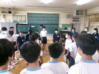 6/25(火)に全校集会が実施されました。5月に行われた市内大会をはじめとする生徒の様々な頑張りが表彰され、全員で努力を讃え合う時間となりました。各委員会からの今後の活動予定の発表や生徒会本部からの生徒会スローガン達成に向けた話も行われ、生徒一人一人が自分も学校の雰囲気を作り上げていく当事者であるということを再確認できました。