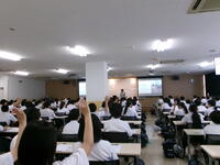 7/2(火)に浜田会計事務所より浜田柾希様をお招きして租税教室を行いました。パワーポイントや身の回りの物を効果的に用いた講義に生徒も夢中で、税金を自分事として捉えるよい機会となりました。誘導や挨拶を担当した歌声委員も練習通りに1日を運営することが出来ました。