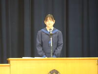 ウクライナの報道に端を発し、戦争を起こさないために私たち中学生にできることはなにか、深く考えた圧巻の弁論。タイトルは「平和のために」。