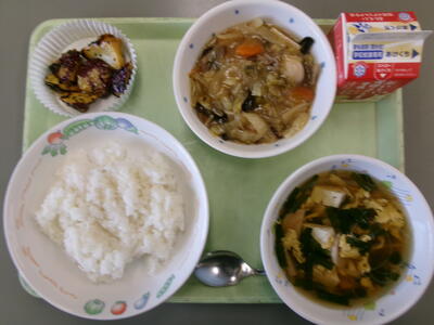 ・中華丼 ・牛乳 ・にら玉スープ ・大学芋