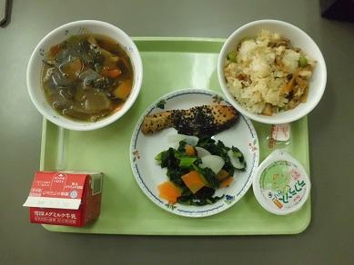 昨日、1月24日(金)から全国学校給食週間が始まりました。第1回は山形県の給食です。メニューは枝豆鶏ごぼうご飯、鮭の南部焼き、おみ漬け、芋煮汁、牛乳、ラフランスゼリーです。全国の給食が味わえるということで楽しみですね。栄養をたくさん摂って元気に過ごしましょう。