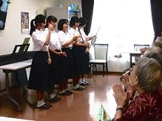 8月1日〈水)介護施設和楽フォルテシモ、秋桜ヴィレッジ清水公園デーサービスにおきましてボランティアとして福祉活動を行いました。吹奏楽部を中心に10名の生徒が参加をし、施設の方々と音楽や歌、ゲームなどで交流を深めてまいりました。今年の夏はとくに暑いですが、お体に気をつけて元気に夏を乗り切ってほしいですね。